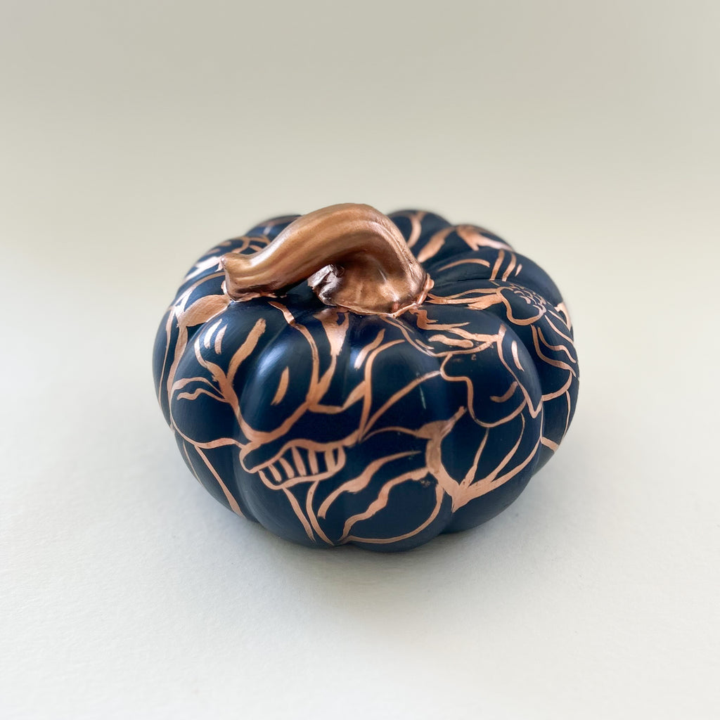 Indigo and Copper Floral Pumpkin|Jessica Reynolds Art