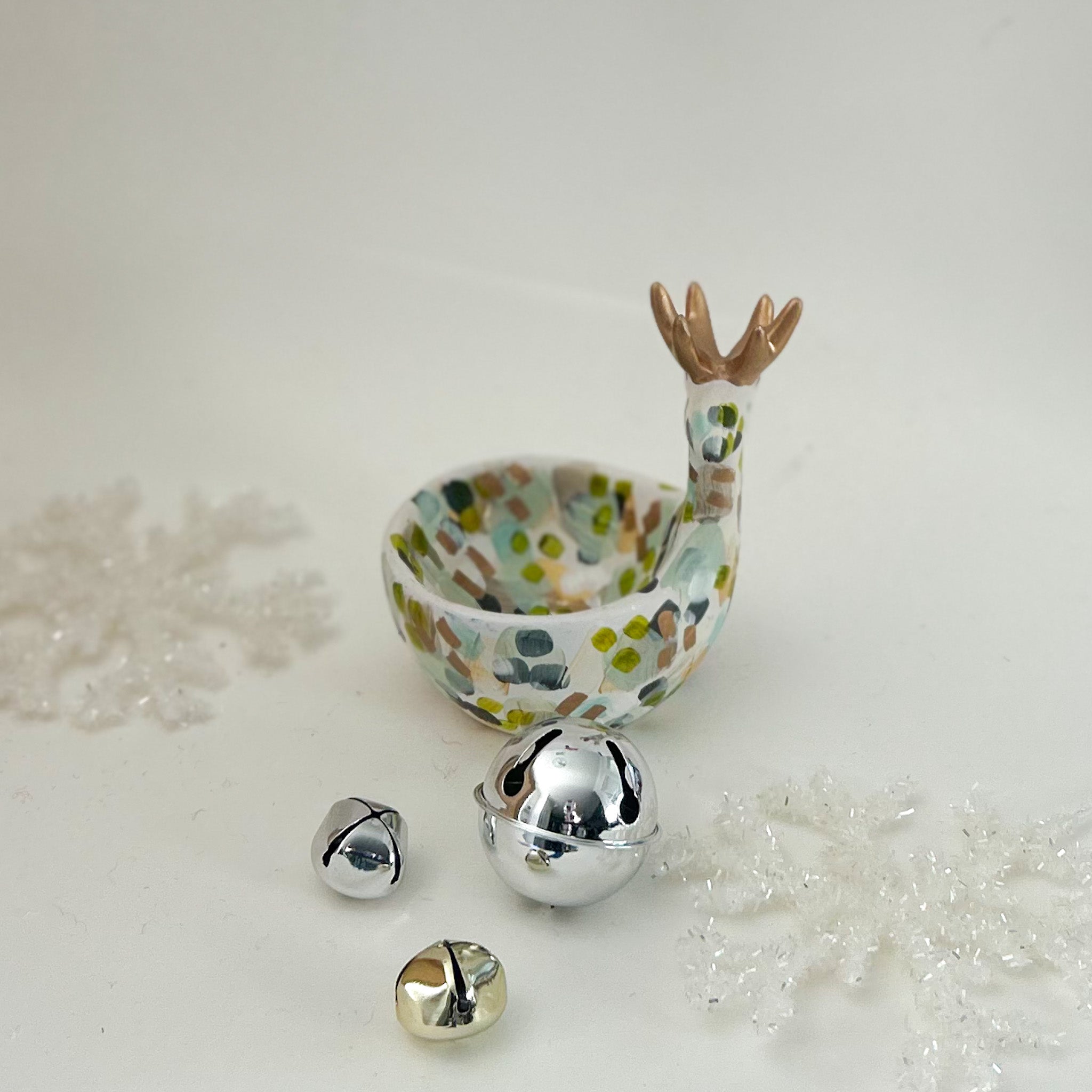 This cute little bowl measures at 6" tall and 4" in diameter. Please note each bowl is painted by hand and some variation may occur.