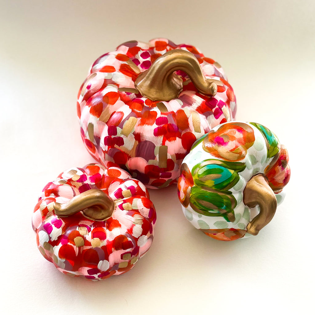 Please note design may vary slightly in the pumpkin you receive however the color palette and brush marks are consistent with the images shown.