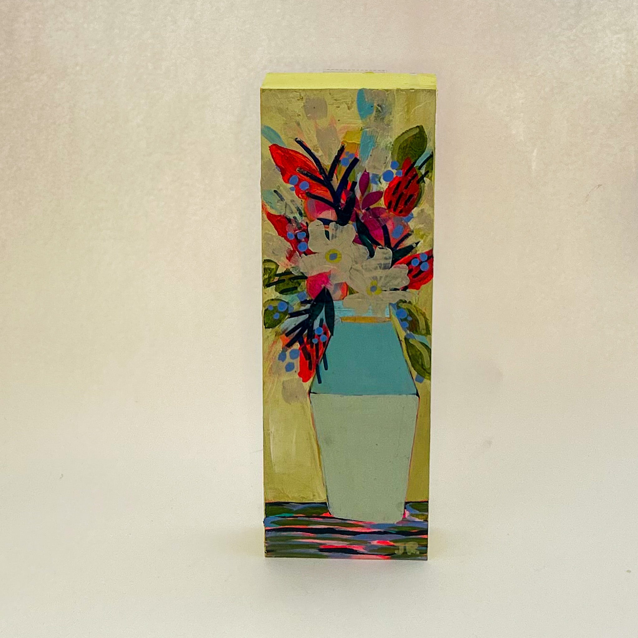 Painting is mixed media including acrylic and polymer lift on birch panel measuring 4” x 12” x 2”