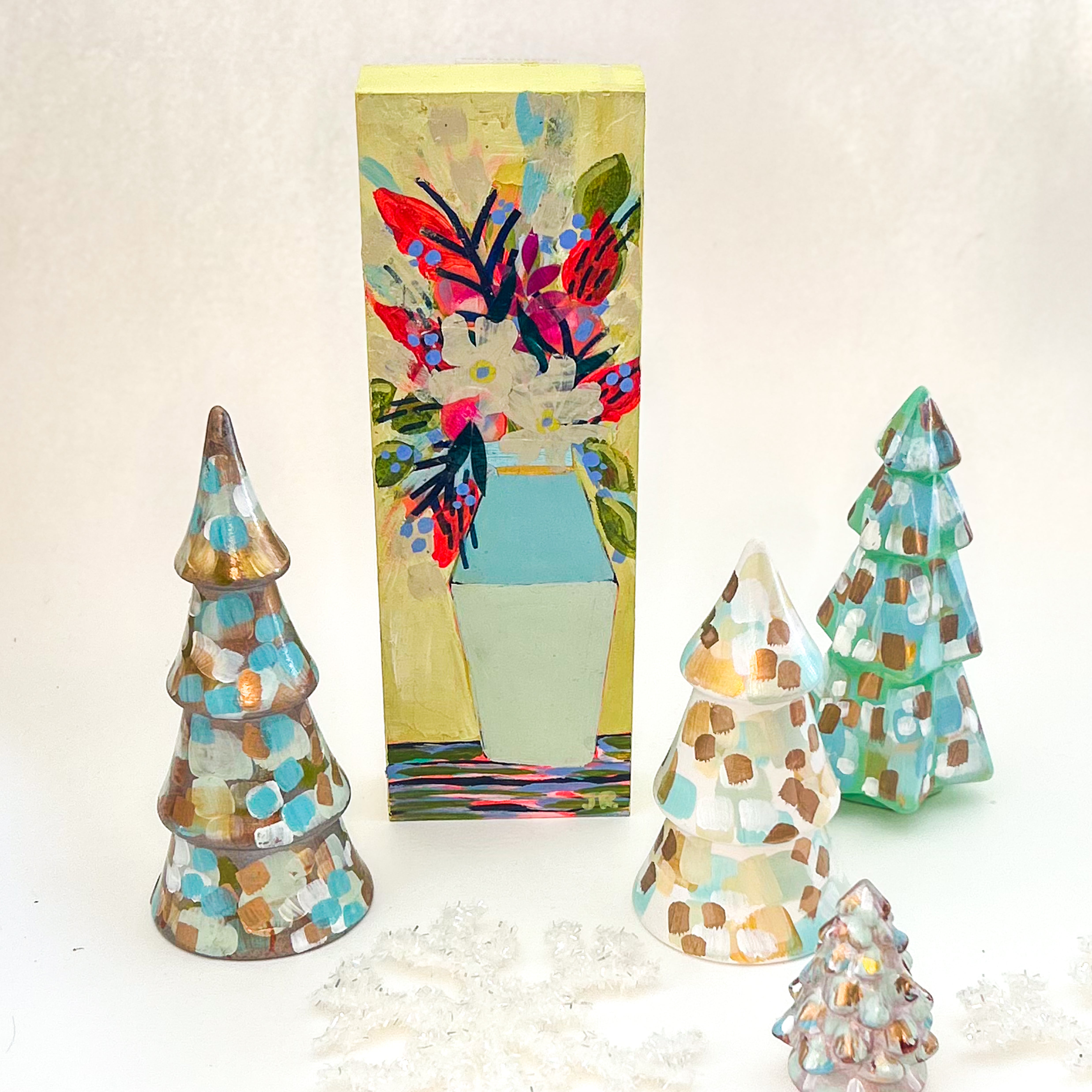 The "Neon Pastel Florals" polymer lift painting is inspired by the celebrations that occur around our kitchen table.