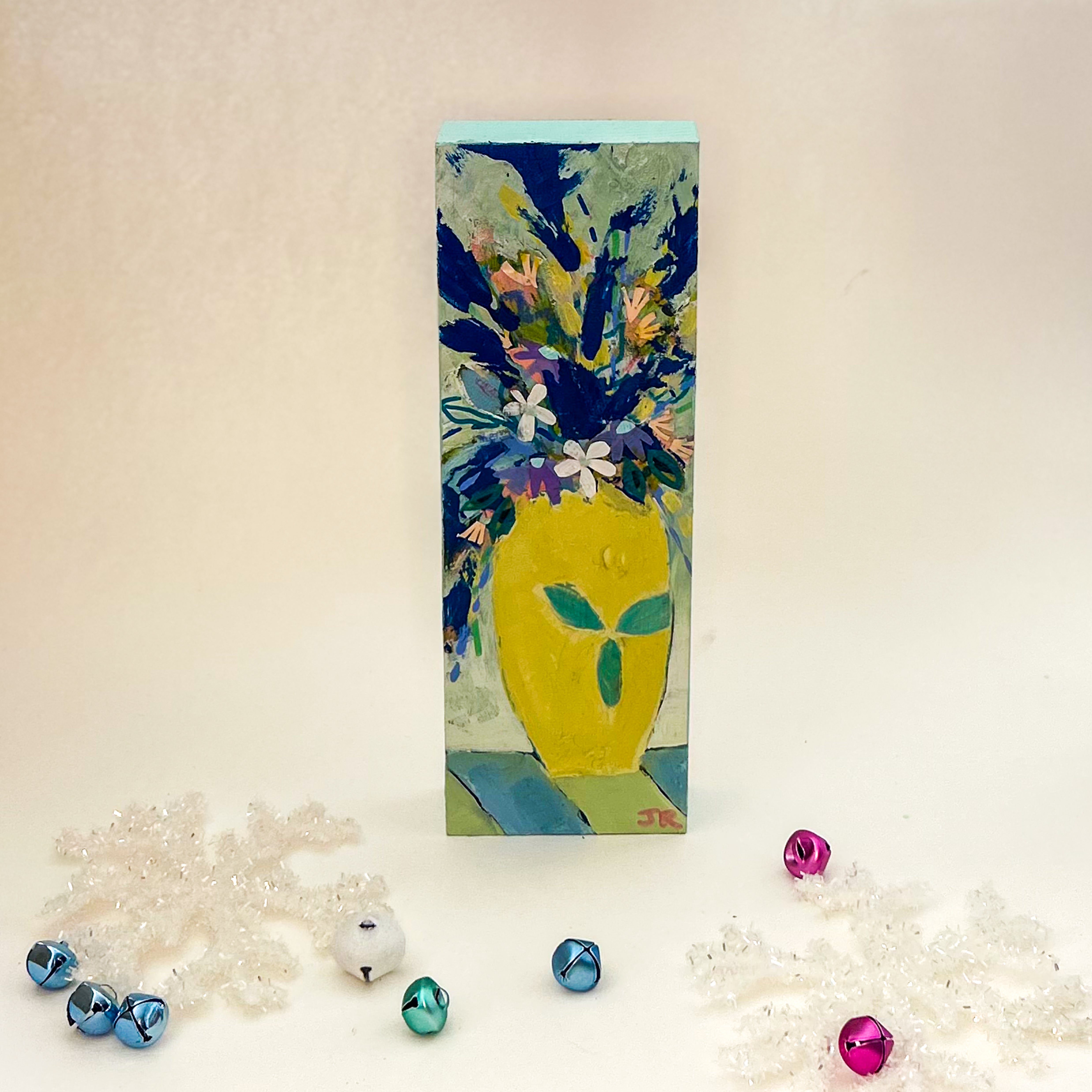 Painting is mixed media including acrylic and polymer lift on birch panel measuring 4” x 12” x 2”