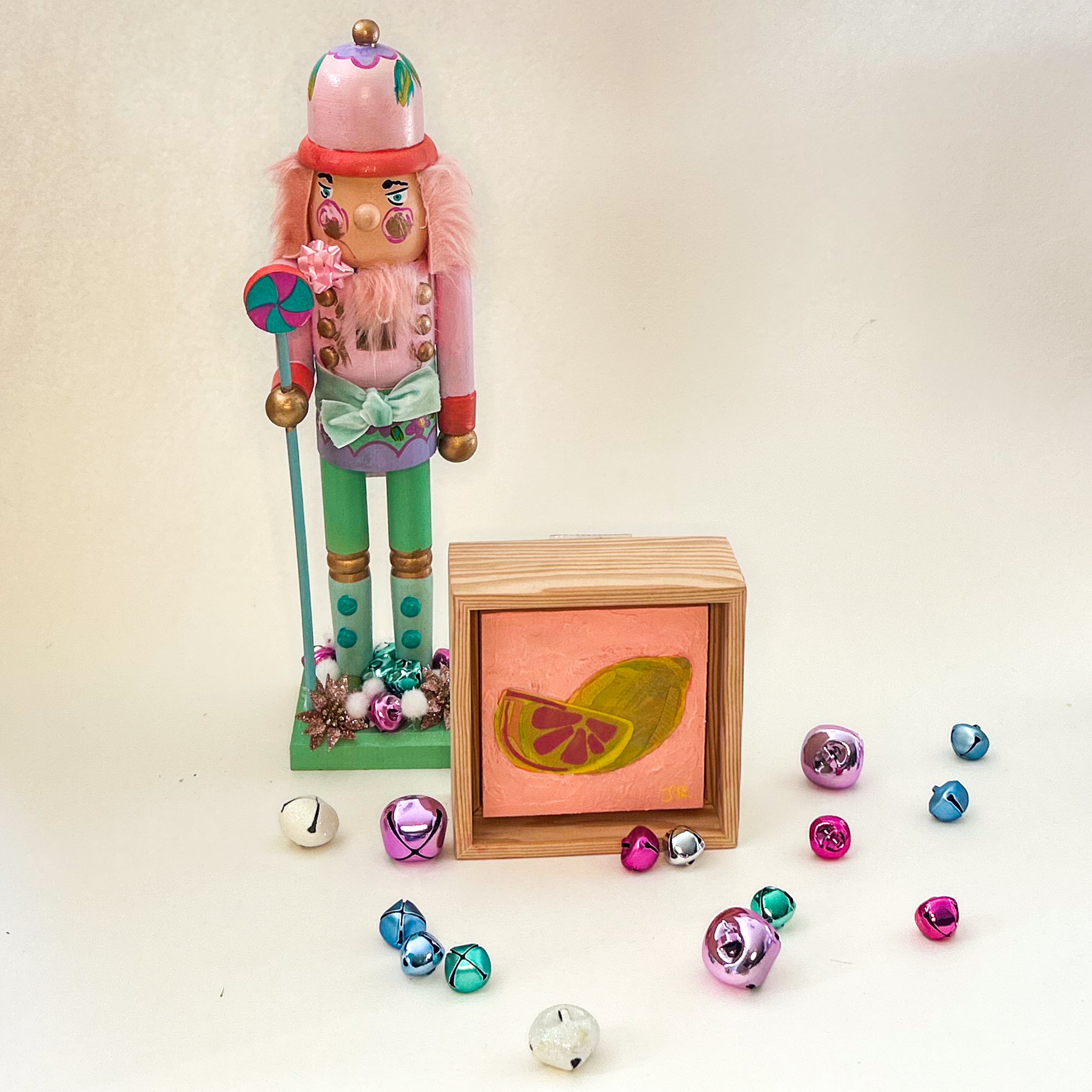 The "Pink Citrus" Polymer Lift painting is inspired by the celebrations that occur around our kitchen table.
